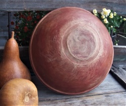 EARLY DOUGH BOWL IN NICE WORN RED PAINT
