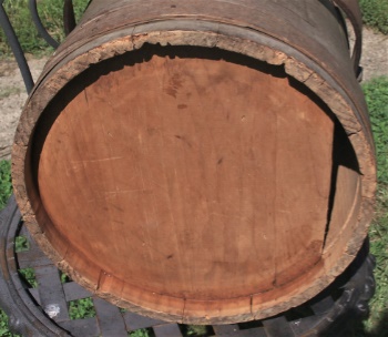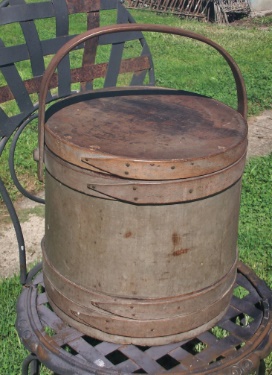 It was constructed with double bands on the base,one on the upper edge and one on the lid. The lapped bands are held with small early tack construction as opposed to the later staples.