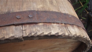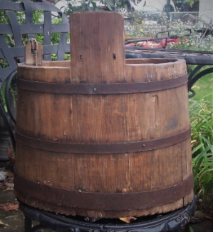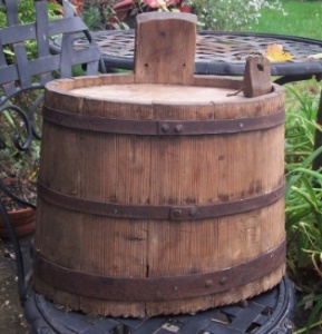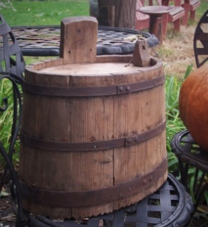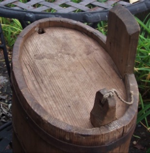 EXTRAORDINARY 18th - EARLY 19th c. PRIMITIVE WOODEN STAVED PIGGIN