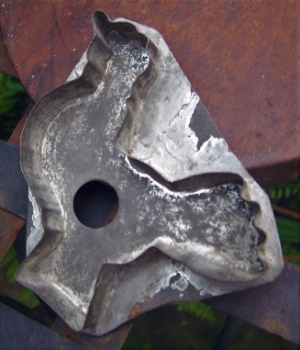 A "Flatback" cookie cutter is the forerunner of the later ones made with a handle. They do not have a handle, nor did they ever have one! They were made with a hole, at times somewhat large, in the flat tin backer. They would have been handled by either the edge of the tin backer or the hole, depending on its size.
