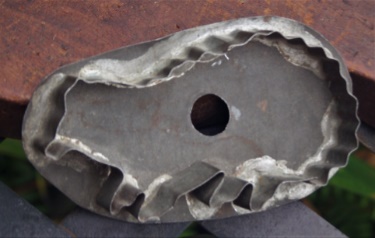 A "Flatback" cookie cutter is the forerunner of the later ones made with a handle. They do not have a handle, nor did they ever have one! They were made with a hole, at times somewhat large, in the flat tin backer. They would have been handled by either the edge of the tin backer or the hole, depending on its size.