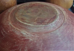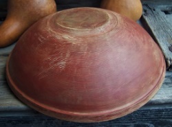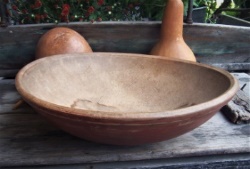 19th c. AMERICAN DOUGH BOWL - WORN RED PAINT~